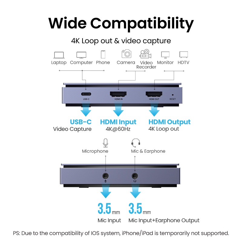UGREEN - 10937 AUDIO VIDEO CAPTURE CARD MIC+HEADPHONE 4K/60HZ HDMI