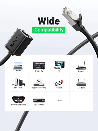 Ugreen CAT6 F/UTP Ethernet RJ45 Extension Male/Female Patch Cords 5m (Black) - 112834.750 JD