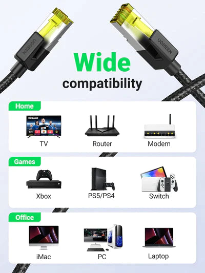 Ugreen CAT8 Shielded Round Braided Pure Copper Ethernet Cable Modular Plugs (5M) - 804335.650 JD