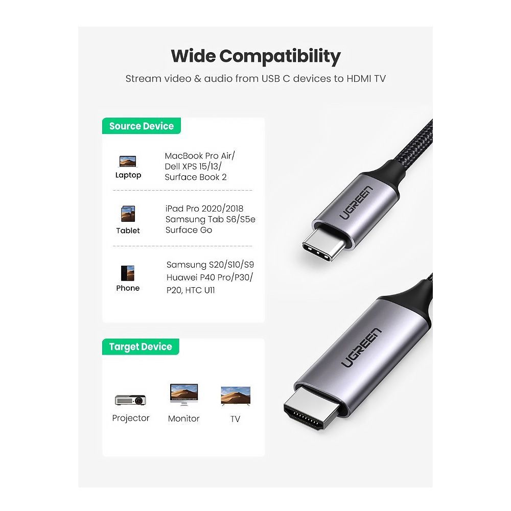 Ugreen cable HDMI to cable - USB Type C 4K 60 Hz 1.5m black-gray - 5057014.990 JD