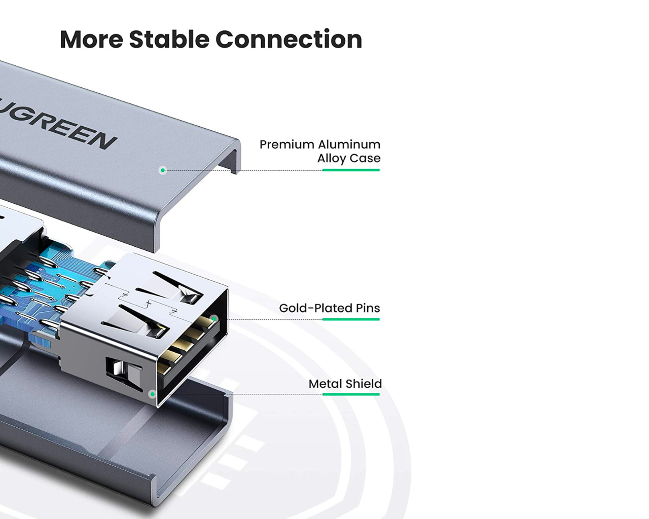Ugreen extension cable adapter USB (male) - USB (female) 3.0 5Gb/s 0.5M Aluminum Case Gray - 104942.990 JD