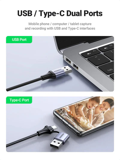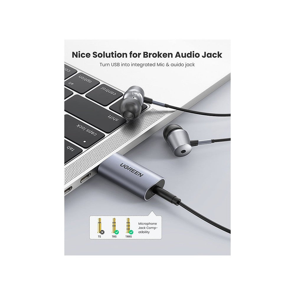 UGREEN 50599 1M External USB Audio Card with 3.5mm Audio/Mic Jack Sound Card Audio Adapter9.990 JD