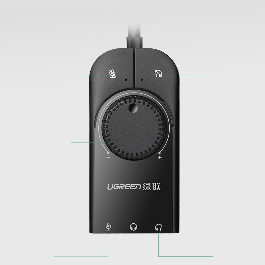 Ugreen External Sound Card Music USB Adapter - 3.5mm Mini Jack With Volume Control 15cm Black - 409648.990 JD