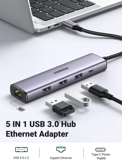 UGREEN USB to Ethernet Adapter, USB 3.0 to RJ45 1Gbps Lan Network Adapter (BLACK) - 2025612.990 JD