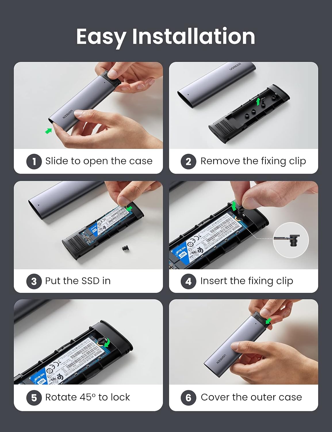 If you are looking for an M.2 SSD bay that will be solid, durable and provide fast data transfer - this is the solution for you. The Ugreen CM400 enclosure will protect your hard drive and store huge amounts of digital data - up to 2 TB. You don't need any tools to install the drive in your pocket. Installation is quick and easy .