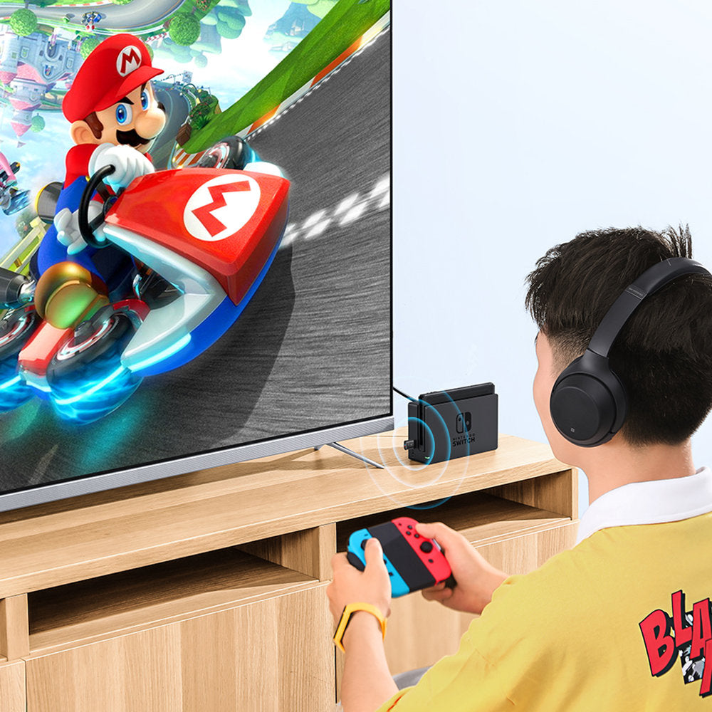 The high-quality Bluetooth transmitter from the respected Ugreen brand was created with gamers in mind. The CM408 is compatible with PlayStation and Nintendo Switch consoles . It is enough to plug it into the USB port on the device to play sounds accompanying the game through wireless headphones or speakers.