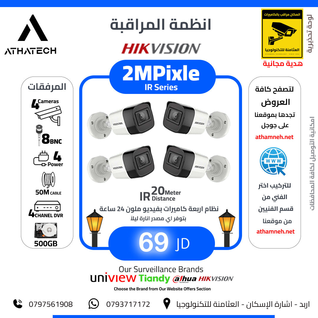 نظام مراقبة ليلي نهاري هيكفيجن 4 كاميرات 2 ميغا 20 متر