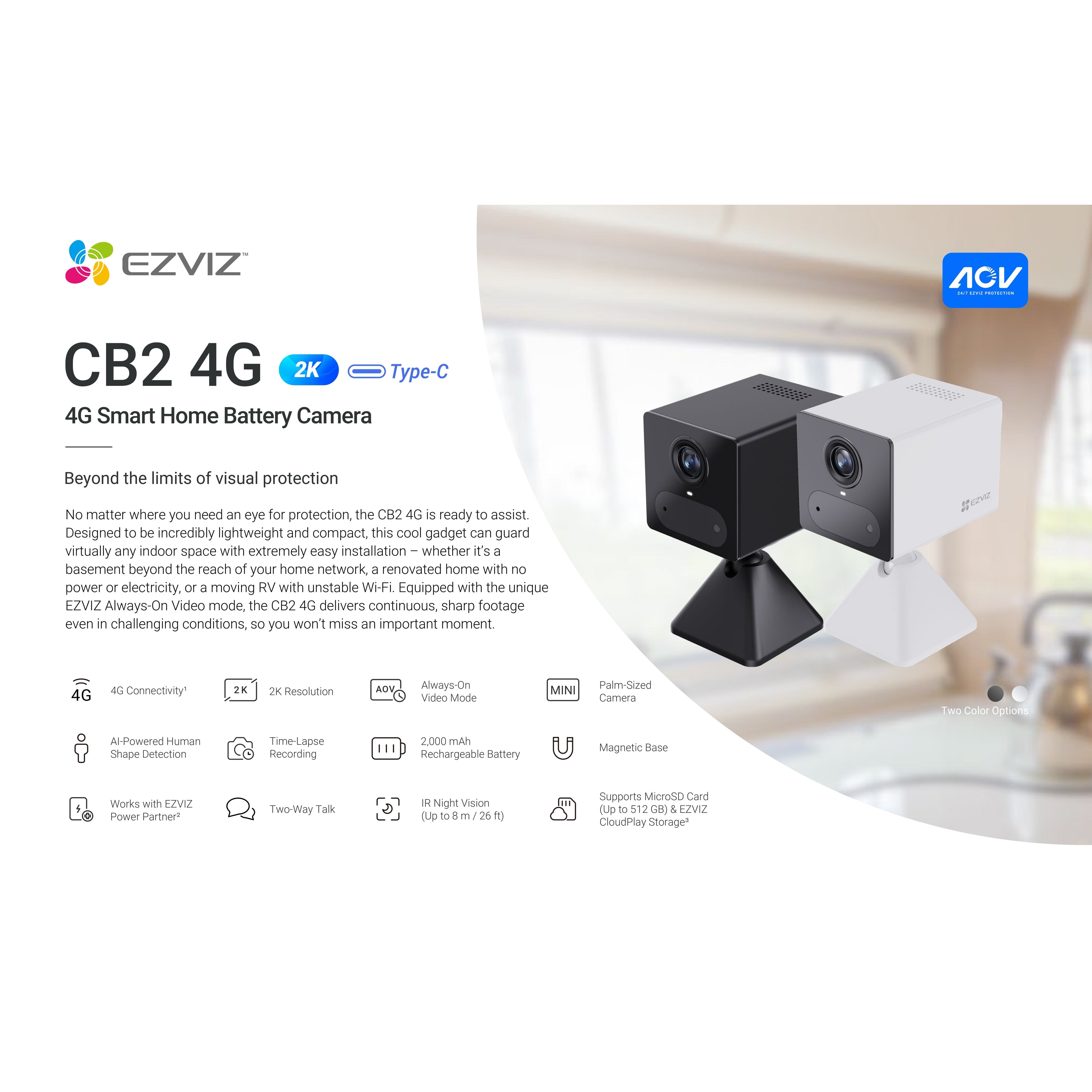 CB2 2MP BATTERY EZVIZ Battery-Powered Indoor WiFi Camera, 50 Days Battery Life